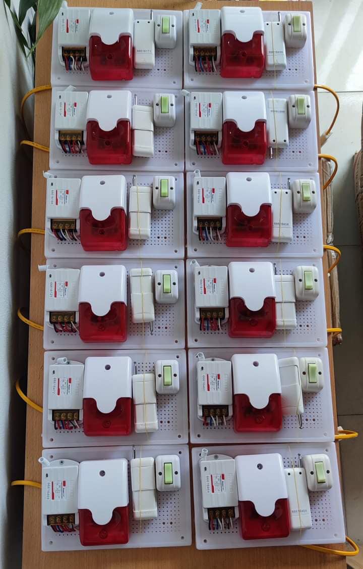 Còi báo cháy được điều khiển bởi các thiết bị cảm biến hoặc con người và âm thanh báo giống như khi xảy ra cháy.